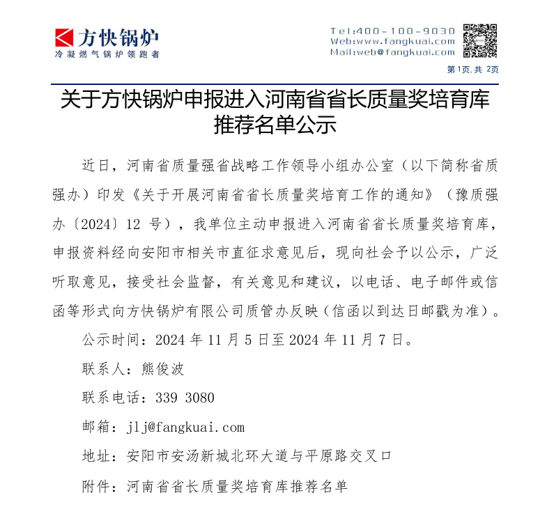 近日,河南省質(zhì)量強省戰(zhàn)略工作領(lǐng)導(dǎo)小組辦公室(以下簡稱省質(zhì)強辦)印發(fā)《關(guān)于開展河南省省長質(zhì)量獎培育工作的通知》(豫質(zhì)強辦〔2024〕12 號)...